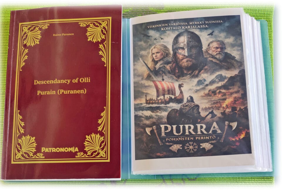 Raino Purasen tekemiä sukukirjoja omasta suvustaan.