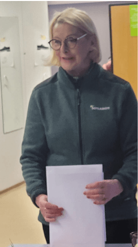 Hän kertoi lyhyesti vuonna 1918 perustetun järjestön historiasta eri aikakausina esim. miten sodan ja pandemian aikana toimintaa sopeutettiin.