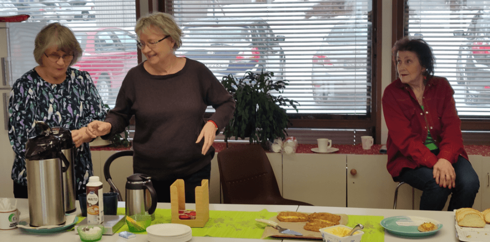 Kahvituksista vastasivat touhukkaat emännät vas. Lea Puranen, Raija Kärkkäinen ja Kirsti Myllymäki-Saarikko.